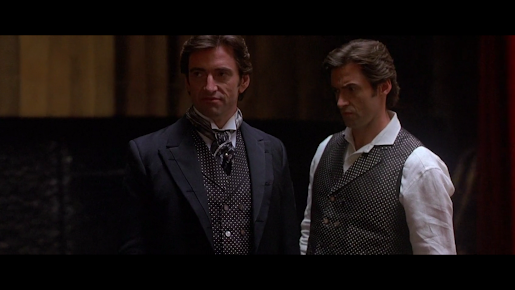 The living Borden, who has lost half his life, his fingers, his wife, and his brother, embraces his deceptive nature and finds his way back to his daughter, reuniting with her and fulfilling the promise he made to his brother. A dark contrast to his twin brother and Angier, who were consumed by the cost of their deception and their obsession with fame and fortune.